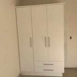 This project involved the interior setup of a house in Rainham Estate, focusing on three bedrooms and a kitchen. A team of four workers completed the project in seven days, ensuring a high-quality finish. The design featured an all-white color scheme for the bedrooms and a kitchen styled with a white and Brockhill Fusion combination.